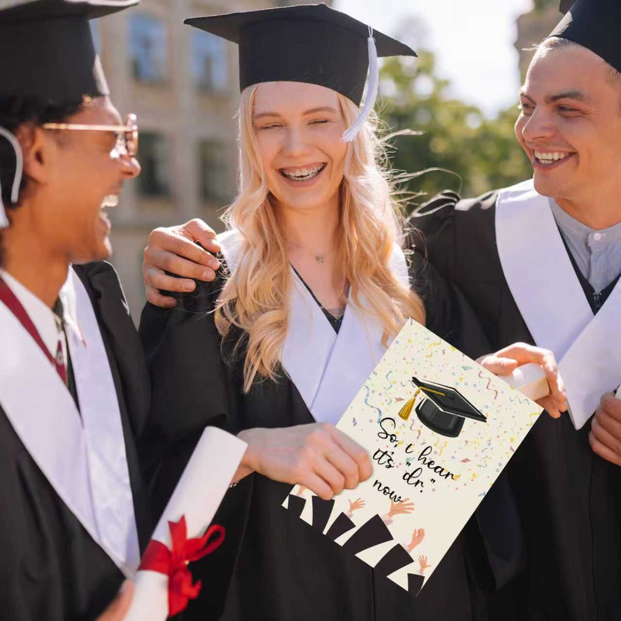 Dr graduation Card– When she receives this card, she may be very excited. When she opens the card, she will smile happily.