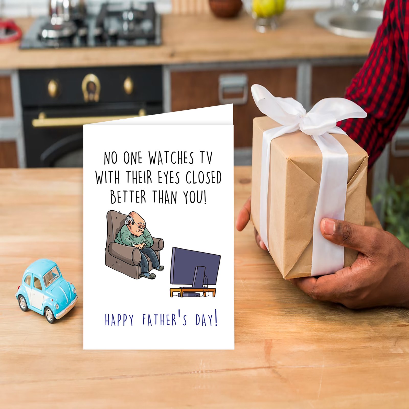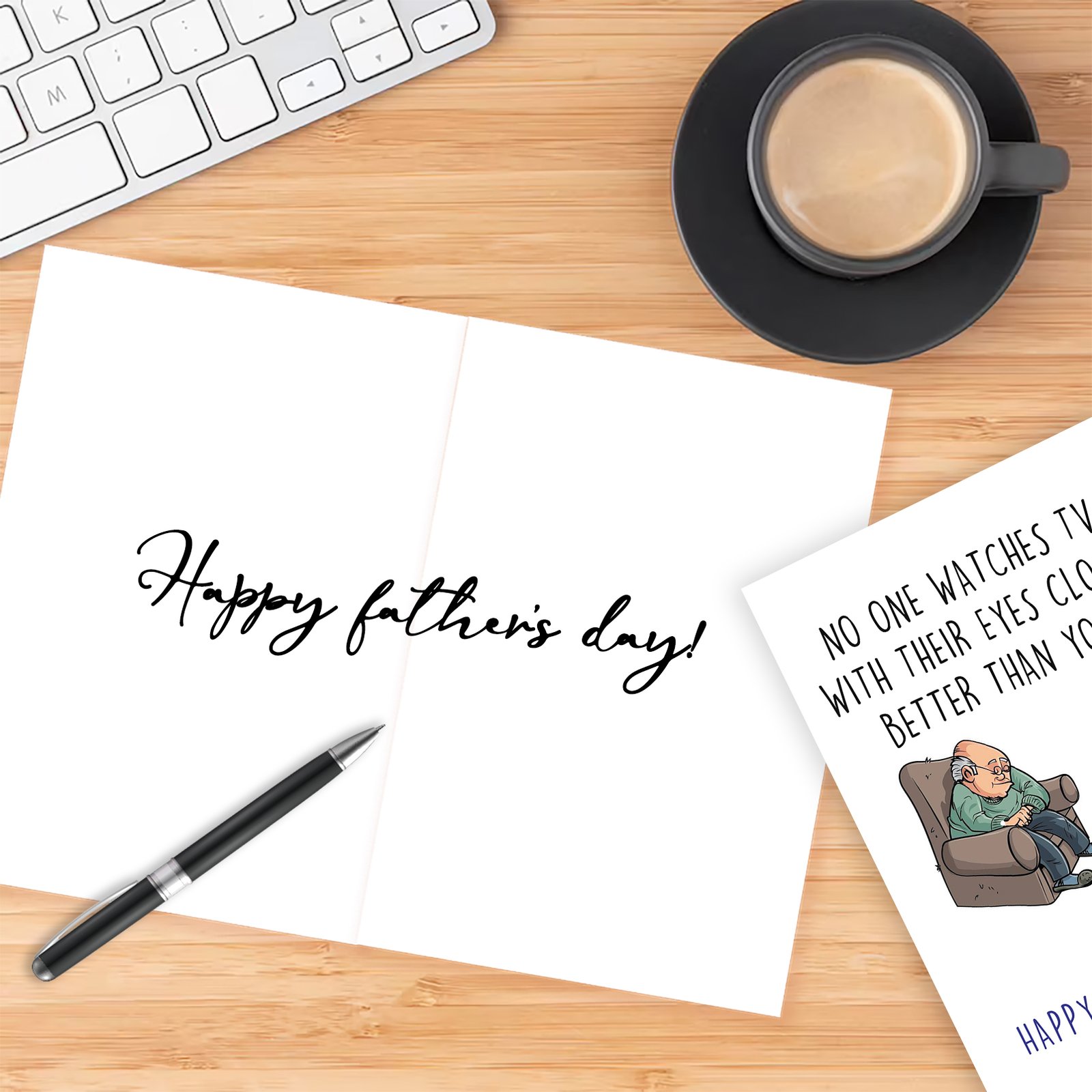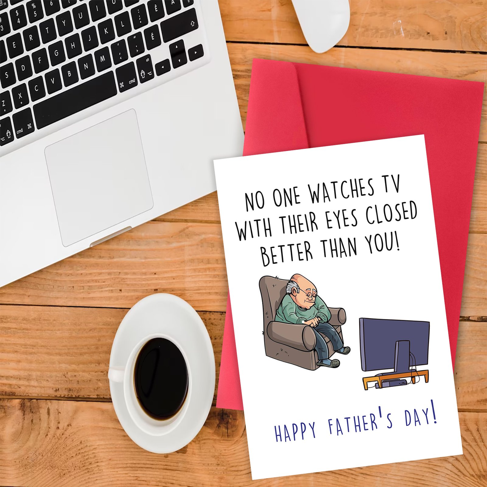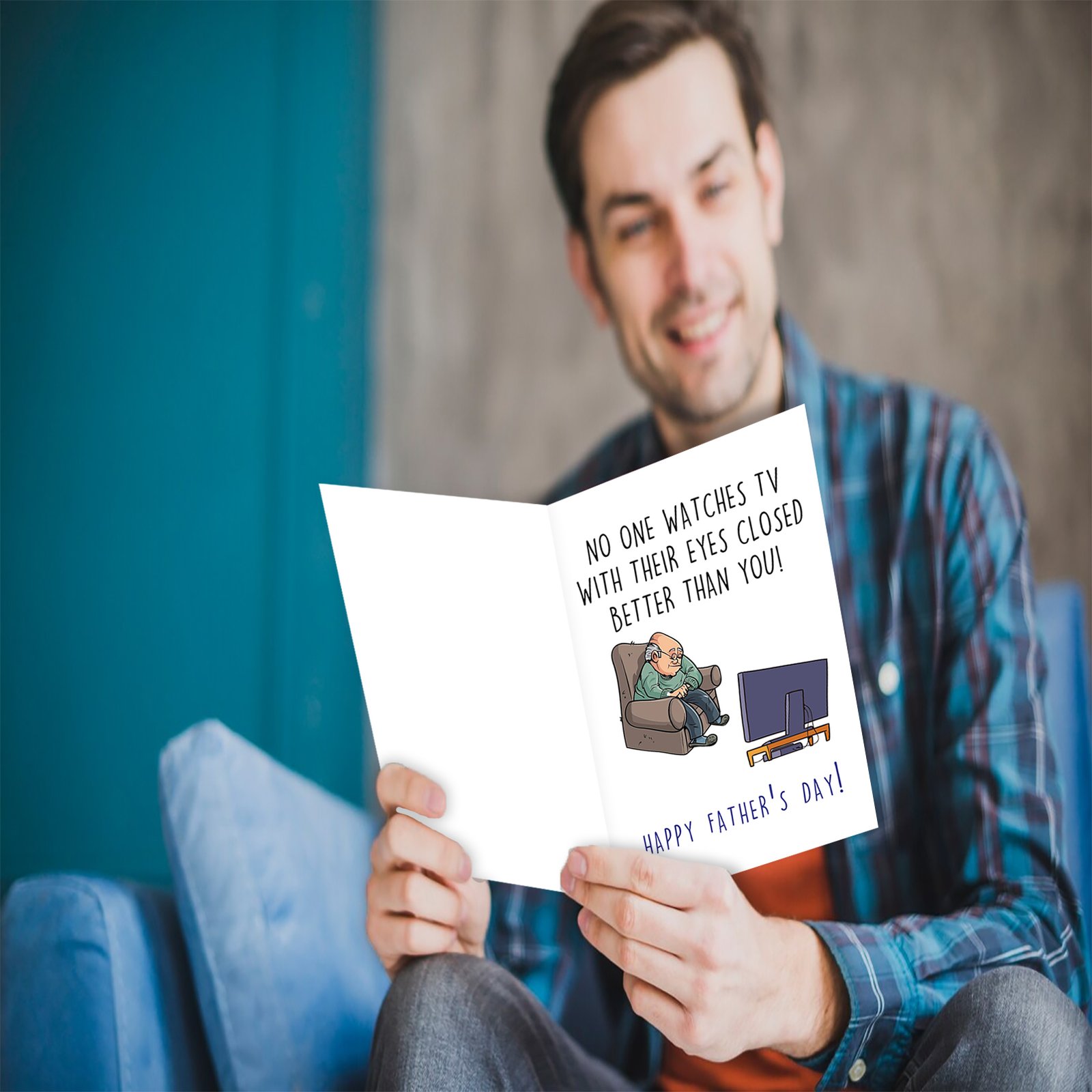 Hilarious Father’s Day Card for Dad Stepdad, Naughty Fathers Day Card Gifts from Daughter Son, Cute Watches TV with Eyes Closed Card