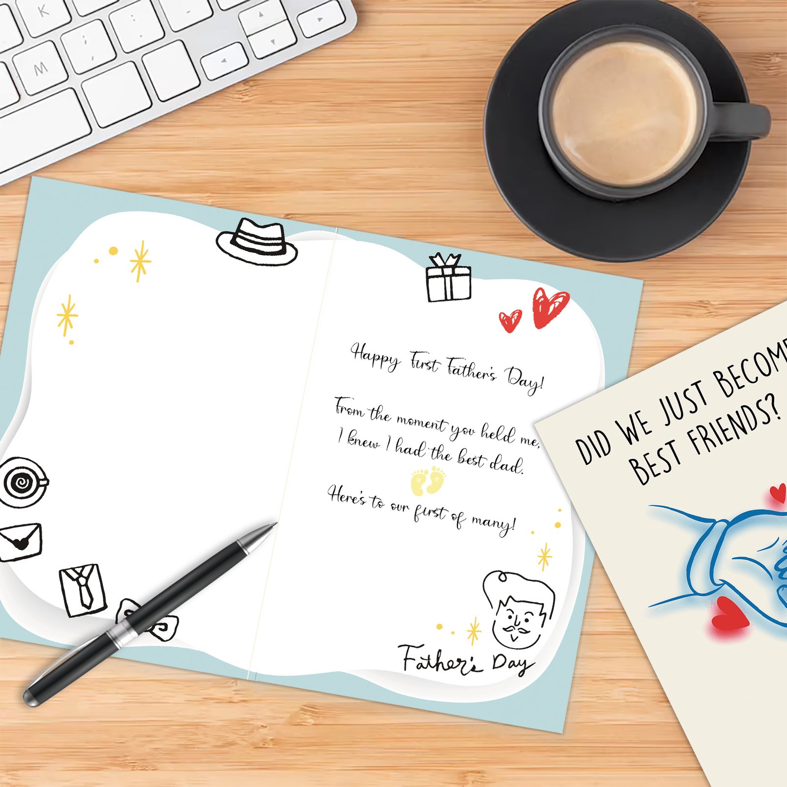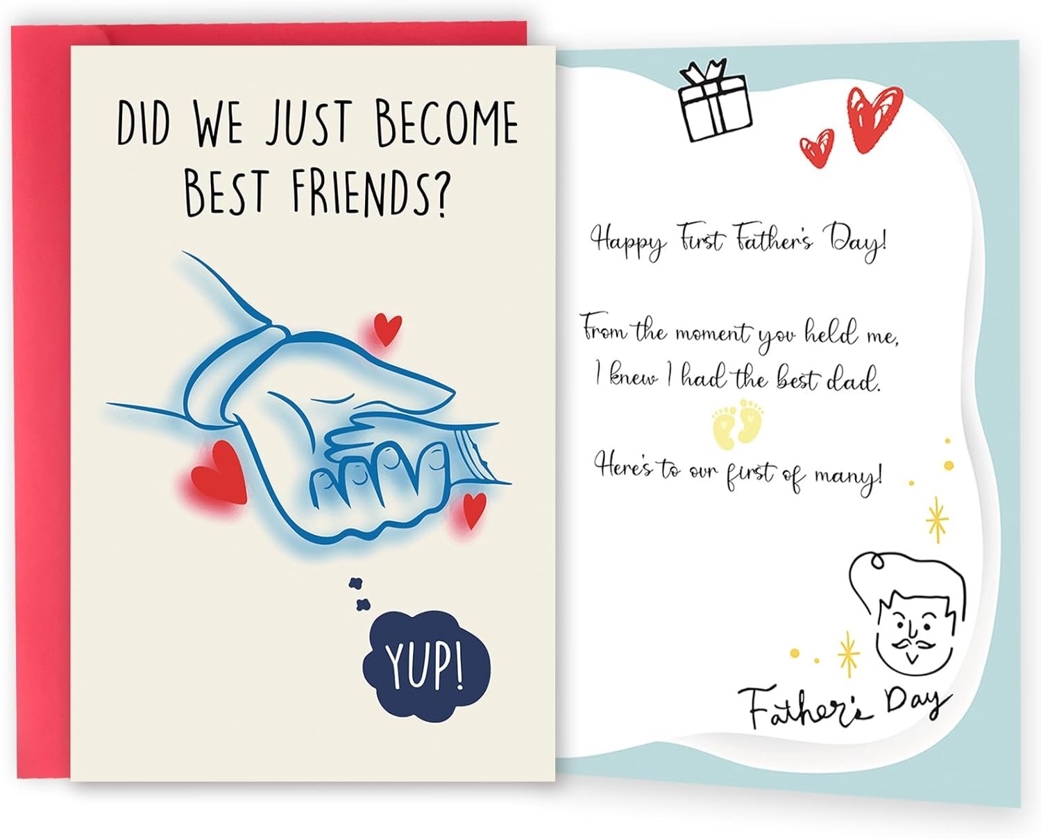 Huameigf Funny First Fathers Day Gift for New Dad, Lovely First Father’s Day Card from Baby Girls Boys, Happy 1st Fathers Day Card, Did We Just Become Best friends